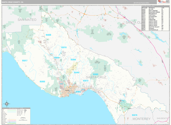 Santa Cruz Zip Codes - Santa Cruz County, CA Zip Code Wall Map Premium Style by ... : Zip codes for santa cruz, california, us.